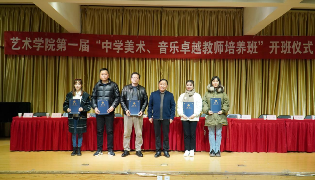 Beat365中文官方网站院长成党伟代表学院在致辞中讲到:举办卓越教师培养班是落实《关于全面加强和改进新时代学校美育工作的意见》《教育部等5部门关于印发〈教师教育振兴行动计划〉(2018—2022年)的通知》文件精神,大力加强推进美育师资培养和一流专业建设的一项重要举措,是构造师范生培养的新样态和新模式,希望入选卓越教师培养班的学生从师德养成、技能提升、实践教学等方面全面提升师范生素养,努力将自己锻造成教育情怀深厚、专业基础扎实、勇于创新教学、善于综合育人和具有终身学习发展能力的一名卓越中学美育教师。