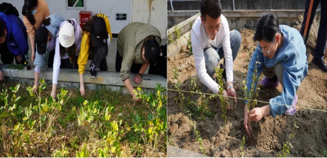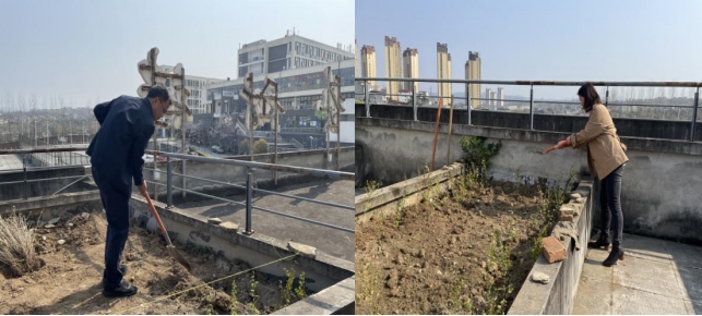 启动仪式结束后,师生共同前往艺术楼三楼平台进行植树活动。在活动前夕,特邀农生学院沈大刚老师做技术指导。在植树现场,大家劳动热情高涨、干劲十足,相互配合。有的扶正树苗、挥锹填土,有的踩实松土、灌溉浇水,合力栽下一棵又一棵树苗。各个环节衔接有序,配合默契,充分发扬了团结互助的精神;经过辛勤劳动,一棵棵整齐的树苗昂然挺立,在和煦的春光中展现出了蓬勃生机。