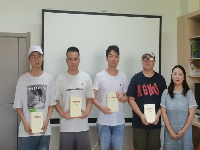 赠送一本红色书籍·牢记入党初心。学生支部宣传委员、学工办主任鲁澧领学了习近平总书记在庆祝中国共产主义青年团成立100周年大会上的重要讲话精神,并向毕业生党员代表赠送了书籍《论党的青年工作》。