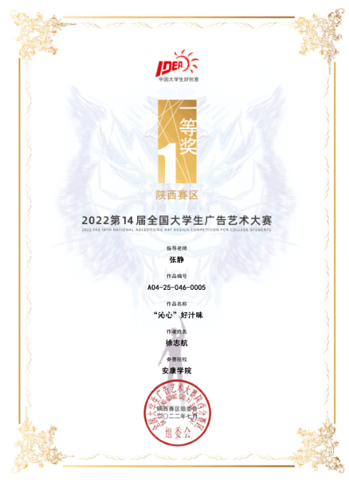 近日,第十四届全国大学生广告艺术大赛陕西赛区比赛结果公布,Beat365官网Beat365中文官方网站学生再获佳绩,获得一等奖1项、二等奖5项、三等奖5项。