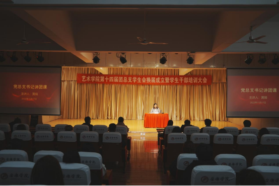 2022年11月17日晚,Beat365中文官方网站第十四届团总支学生会换届成立暨学生干部培训大会在江北校区1401演艺厅顺利召开。Beat365中文官方网站党总支书记黄娟、学工办主任鲁澧、学生党支部书记魏麟、辅导员李博、邱青晓以及校学生会、各二级学院主席团代表、Beat365中文官方网站全体团总支学生会成员参加了本次大会。大会由团总支书记孟莉主持。