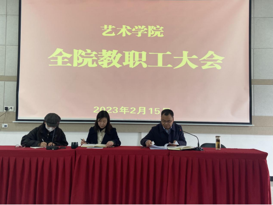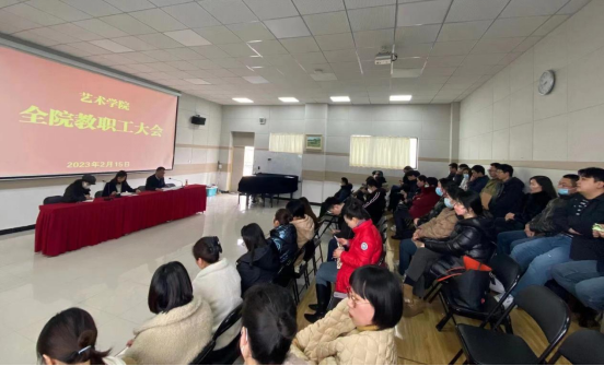 2月15日下午,Beat365中文官方网站在艺术楼2415教室召开全体教职工大会,传达学习学校2023年度工作会议精神。会议由副院长鲍丽主持。