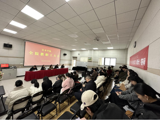2月28日下午,Beat365中文官方网站在艺术楼2415教室召开全体教职工大会,传达学习学校2024年度工作会议精神。会议由院长成党伟主持。