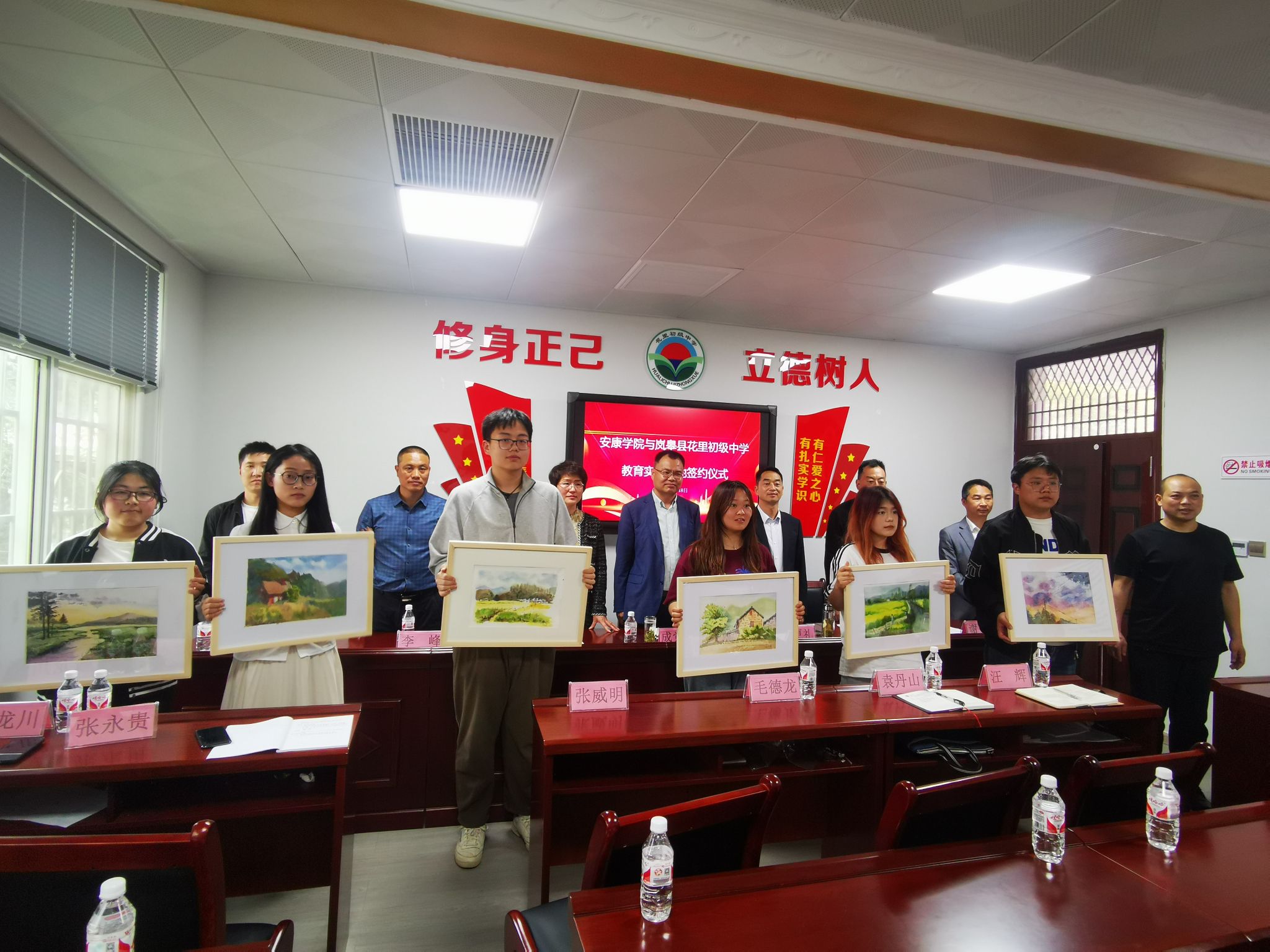 随后,Beat365中文官方网站与岚皋县花里初级中学举行了美育实践基地签约仪式,Beat365中文官方网站院长成党伟和岚皋县花里初级中学校长狄邦银代表双方签约,岚皋县教育体育科技局教育衔接办主任丁更礼见证签约,活动由花里中学政教主任谢战主持。双方就共同促进美育工作签订了美育实践基地共建协议。活动中,Beat365中文官方网站12位同学把第一批12幅美术写生作品捐赠给花里初级中学作为美育教学资源。