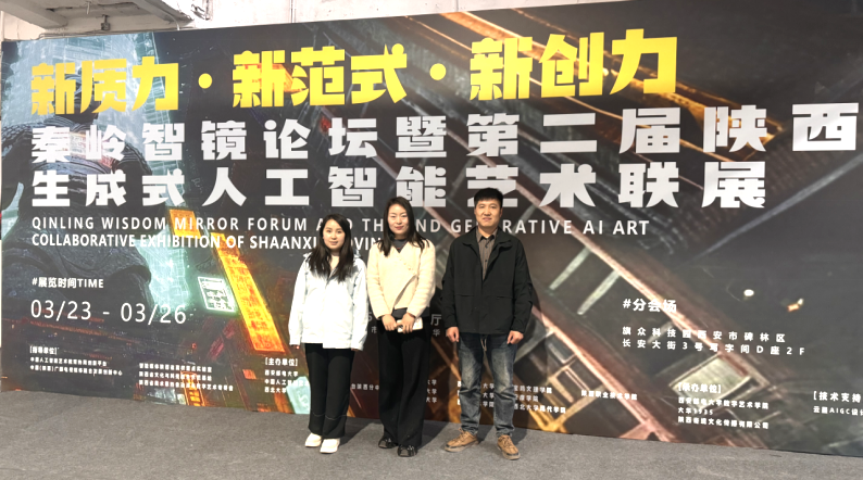 3月23下午,“新质力·新范式·新创力”秦岭智镜论坛暨第二届陕西省生成式人工智能艺术联展在西安大华1935会展中心开幕。此次活动由西安邮电大学、西北大学、西安理工大学、西北政法大学、西安工业大学、西安工程大学、西安财经大学、西安美术学院、宝鸡文理学院、Beat365中文官方网站等12所高校主办,多所科技艺术企业协同承办。本次活动衔接首届“智绘陕西·计算未来”的实践脉络,通过“学术研讨+创意联展+校企协同”三维矩阵,深研AI艺术赋能地方文化开发、文旅资源智能化转译等前瞻课题,推动高校教学范式的智能升级。Beat365官网青年教师李秀春、付苗、刘婉毅受邀参加此次活动。