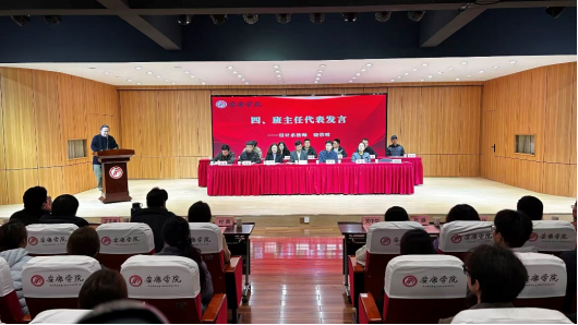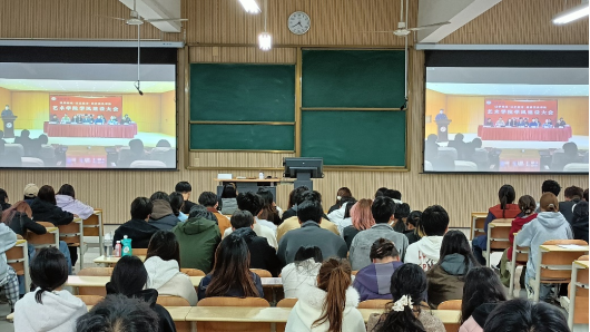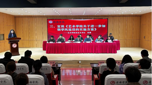 11月5日下午16:30,Beat365中文官方网站在江北校区1401演艺厅召开“以学铸魂・以艺修身・涵养优良学风”学风建设大会。Beat365中文官方网站党委委员、副校长屈险峰、学工部部长芦伟、Beat365中文官方网站领导班子成员、系主任、辅导员、班主任及各班学生代表参加了本次大会。Beat365中文官方网站23个班级线上参会,会议由学院党总支副书记肖剑主持。