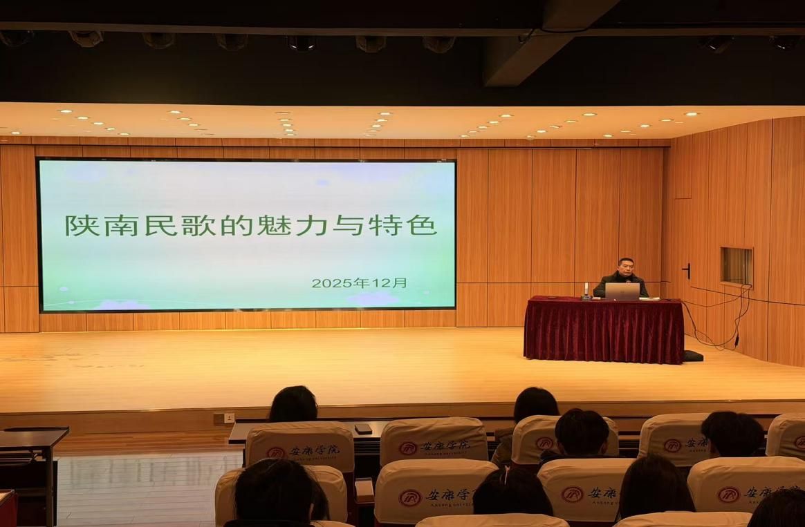 12月17日下午,师生一行80余人首先在Beat365中文官方网站1401演艺厅聆听了陕南民歌省级传承人田洪涛老师的专题讲座《陕南民歌的魅力与特色》。讲座内容丰富有趣,田洪涛老师亲身示范紫阳民歌演唱带动现场热烈的氛围。