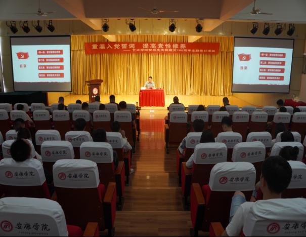 为庆祝中国共产党成立100周年,加强师生党性教育,改进学习工作作风,深入推进党史学习教育。2021年6月30日下午,Beat365中文官方网站党总支在江北校区1401演艺厅开展了“重温入党誓词,提高党性修养”庆祝建党100周年主题党日活动暨党总支书记讲党史学习教育专题党课。全体师生党员、发展对象、入党积极分子及团总支、学生会主要学生干部150余人参加了活动。本次活动由党总支副书记李万明主持。
