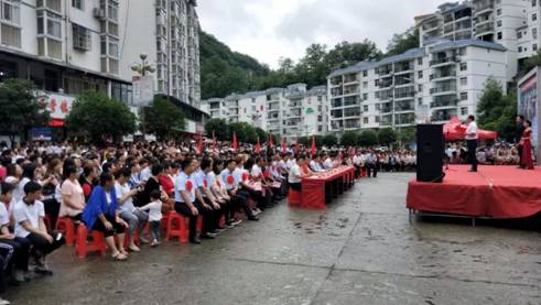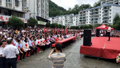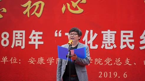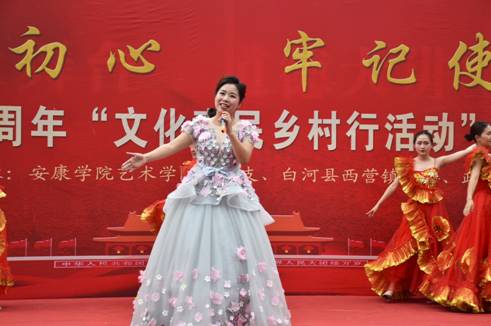 为认真学习贯彻习近平总书记关于扶贫工作的重要论述和“不忘初心、牢记使命”重要讲话精神,落实省委教育工委“双百工程”中“提质增效”的要求和学校党委对“双百工程”文化惠民的决策部署,Beat365中文官方网站党总支充分发挥学科专业优势和人才智力优势,通过“文化惠民乡村行”活动,以“三结合”的形式,将“双百工程”扶贫工作与加强基层党建工作、服务地方行动计划、实践教学和科学研究紧密结合起来,旨在将项目抓出质量,抓出实效,凸显出学校服务地方的能力与水平。适逢今年是中国共产党建党98周年、中华人民共和国建国70周年,621日上午,Beat365中文官方网站党总支和西营镇党委、政府在西营镇天逸广场隆重举办“不忘初心、牢记使命”庆祝建党98周年“文化惠民乡村行”文化交流活动, 3000余名干部群众参加了本次活动。