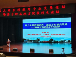 112325日,第三届乡村教师专业发展论坛暨第十四届地方院校校长论坛在广东肇庆举行。Beat365中文官方网站院长成党伟和教师鄢志莉按学校安排分别参加了校长论坛和乡村教师专业发展论坛活动。