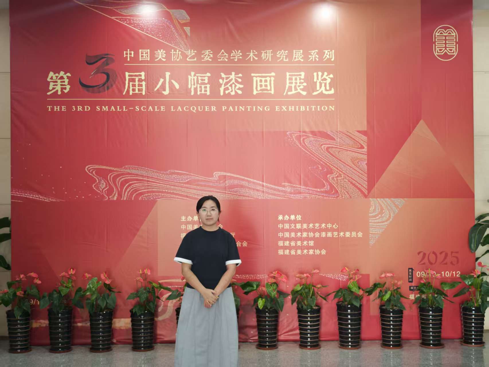 此外,赵霞老师在研修期间还观摩了由中国美术家协会主办的第三届小幅漆画展览。面对大量融合传统与创新的高水平作品,教师深受启发,表示将把所学、所感、所悟转化为教学与创作的新动力,致力于引导和帮助学生拓宽创作思路,提升艺术表现力,创作出更多弘扬中华优秀传统文化、兼具时代精神的优秀漆艺作品。