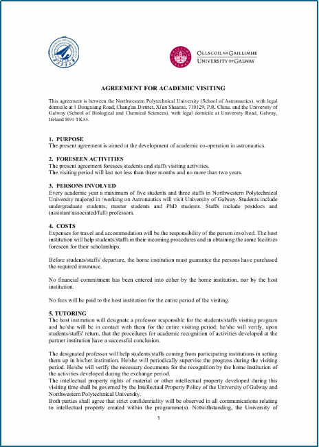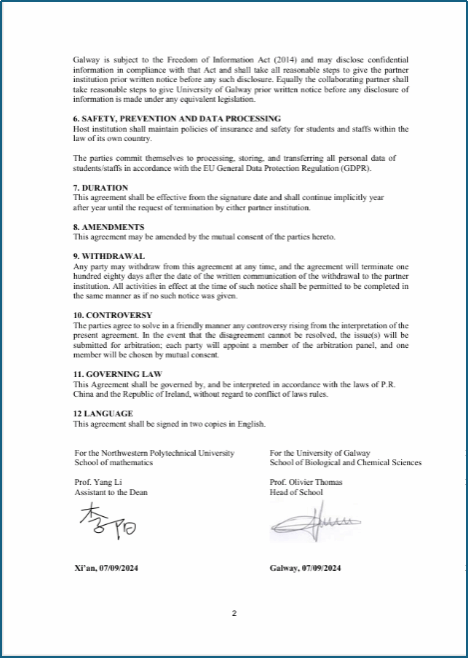 同年9月,beat365亚洲版官网与高威大学生物与化学学院签署院级学生联合培养协议。以下为两校学生联合培养协议首页与末页。