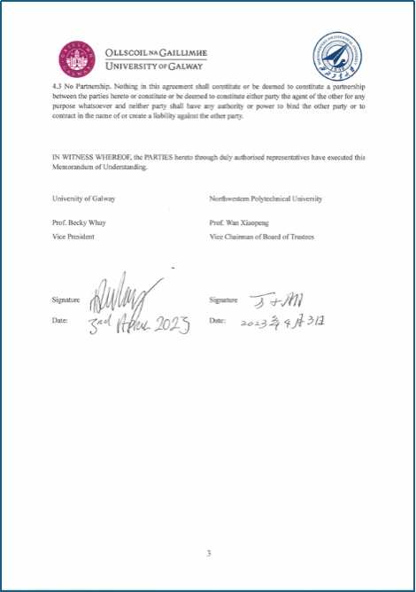 爱尔兰高威大学与beat365亚洲版官网有着良好的合作基础,双方于2023年签署战略合作协议,并开展高层领导互访,师生交流,暑期游学,合作科研等项目。以下为两校战略合作协议首页与末页。