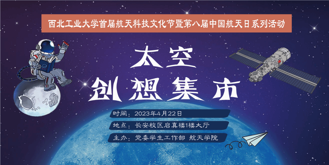 为激发同学们对我国航天事业的兴趣,beat365亚洲版官网将于4月22日11:00在长安校区启真楼1楼大厅举办太空创想集市活动,通过多种形式的小游戏寓教于乐,让全校学子们在享受游戏欢乐的同时,了解航天文化,树立远大理想。